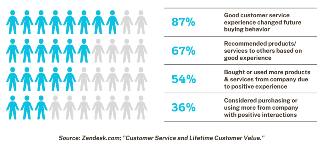 Outsourcing your customer service operations to an omnichannel provider can lead to improved customer satisfaction. The provider has the expertise and resources to manage a high volume of customer queries across multiple channels as this is a field they specialize in. They can provide your customers with a faster and more efficient service, leading to increased customer loyalty and higher retention rates for your business. According to a survey by Zendesk, 87% of customers who had a good customer service interaction reveal that their experience changed future buying behavior, from recommending products or services to other people (67%) to purchasing or using more products and services from that company (54%) to considering purchasing or using more from that company (39%).